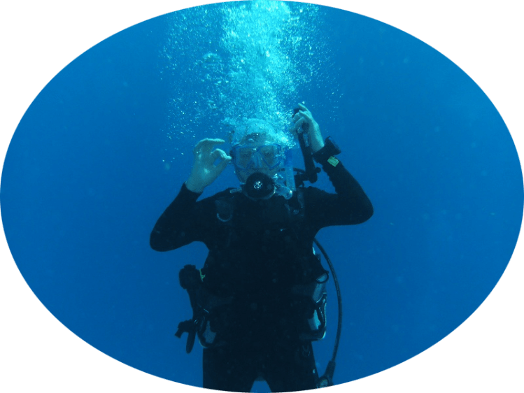 PADI rules are clear – if you lose your ‘buddy’ underwater you remain where you are for a minute before ascending. I sat motionless in the gloom, watching and waiting as the second hand on my watch crept slowly round. The long, lonely minute was finally up and I surfaced, (remembering my ‘safety stop at fifteen feet ) to find Lana on the surface frantically looking for my bubbles.