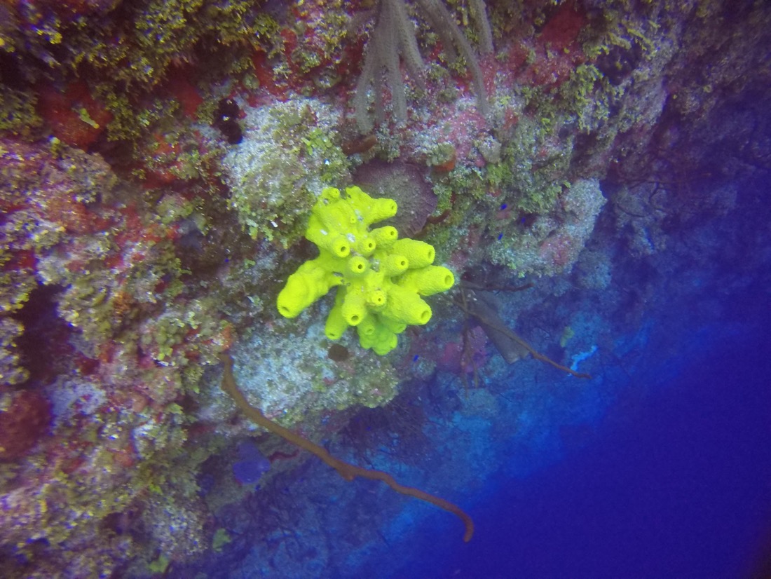 As we set out on our dive boat there was a rainbow ahead of us. A foretaste of the colours waiting below. This time I’m not describing the myriads of iridescent reef fish with dots, dashes and stripes,. No, today it was the corals of Little Cayman which really captivated me. I’ve been diving ( Americans say “I’ve doved” but being a Brit I still struggle with that!) months after hurricanes have blown through reefs and I’ve seen the utter devastation left behind; remnants of battered coral and deathly grey landscapes. Very occasionally my heart would almost stop as I detected the slightest hint of colour on the tip of a dark blasted coral – new life struggling to push through. But the coral on this Cayman reef was definitely alive and well. It was so affirming to see this amount and variety of living coral and what a joy to swim in and out, above and below and through the fronds and edifices. The colours. at times so demanding of attention, like small children calling out, “Look at me, Look at me”.