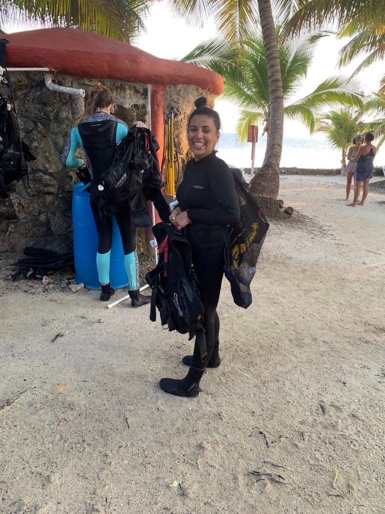 Last year I decided to share my growing passion for the underwater world. My eldest grand daughter Iman came with me to Belize to learn to dive. We went with DiverMojo to Tom Owen Island, a remote island which is an hour’s boat ride from La Placencia. Once we left the mainland there was no wi fi and no telecommunication for the whole week. That in itself was quite a remarkable achievement for many of us !